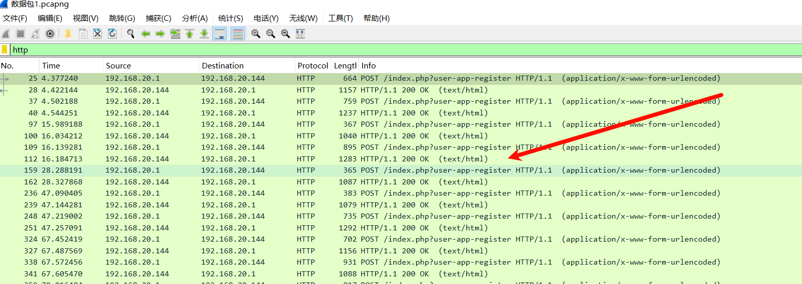 看到有 pcap 流量包下载下来 wireshark 看一眼