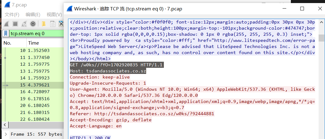 下载数据包文件 hacker1.pacapng,分析恶意程序访问了内嵌 URL 获取了 zip 压缩包,该 URL 是什么将该 URL 作为 FLAG 提交 FLAG(形式:flag {xxxx.co.xxxx/w0ks//?YO=xxxxxxx}) (无需 http、https);