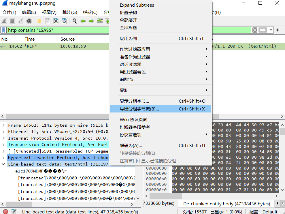 先导出分组解析结果,里面有一个字段: urlencoded-form.value 就是 http 的 post 请求